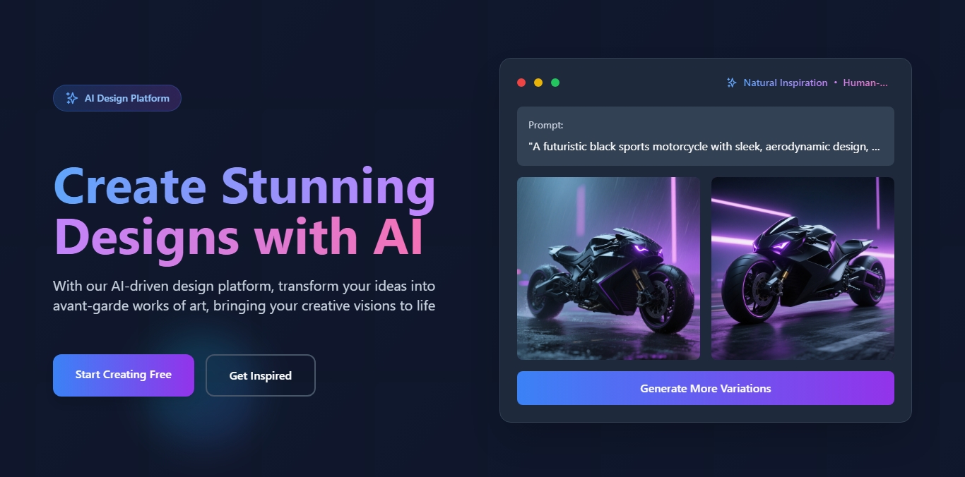 Transform your ideas into stunning visuals with our advanced AI technology. Simply describe what you want, and watch the magic happen.